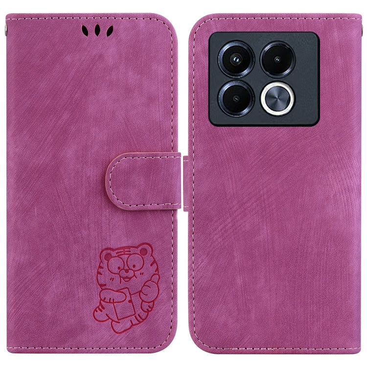 Funda de Cuero con Relieve de Tigre para Teléfono Infinix Note 40 5G (Rosa Rojo)