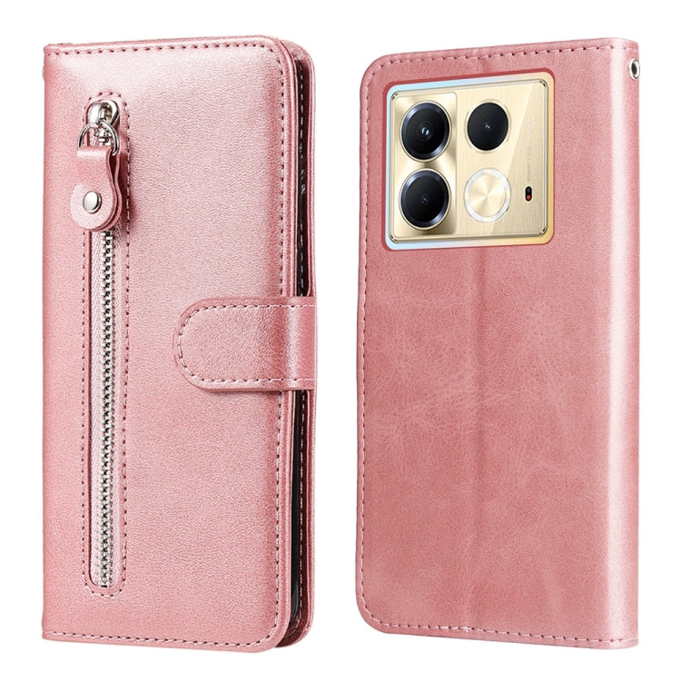 Funda de Piel con Textura de Becerro y Cremallera para Infinix Note 40 Pro 4G/5G/Pro+ (Oro Rosa)