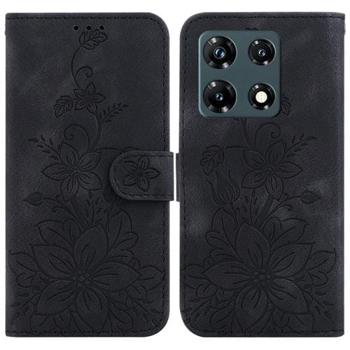 Funda de Cuero en Relieve para Infinix Note 30 Pro Lily para Teléfono (Negro)
