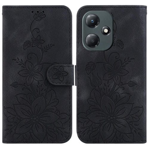 Estuche para Teléfono Infinix Hot 30 Play X6835 Cuero con Relieve de Lirio (Negro)