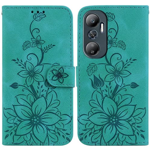 Estuche para Teléfono Infinix Zero 20 / X6821 Cuero con Relieve de Lirio (Verde)