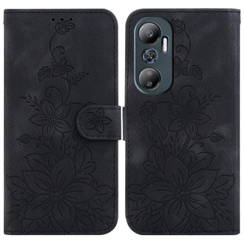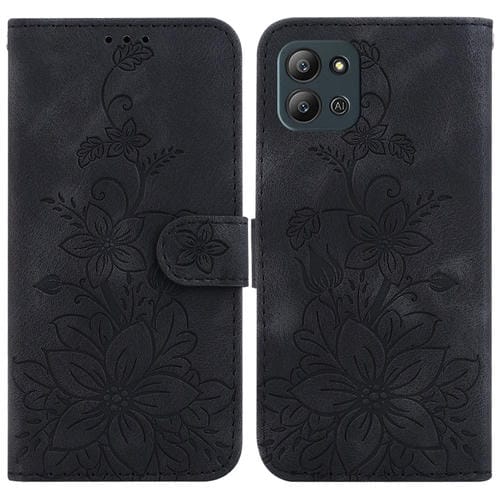 Funda para Teléfono Infinix Hot 11 (2022) Cuero con Relieve Lily (Negro)