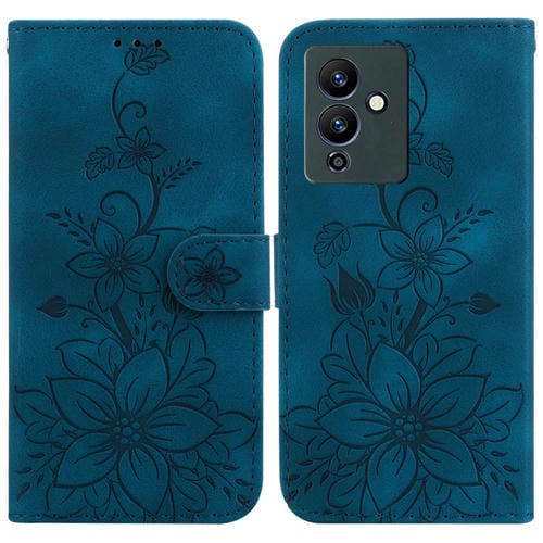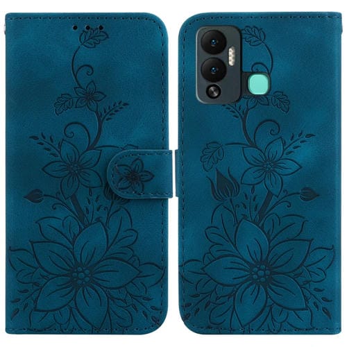 Funda de Cuero En Relieve para Infinix Hot 20 5G Lily para Teléfono (Azul Oscuro)