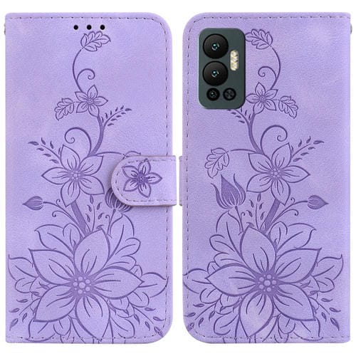 Estuche para Infinix Note 12 Pro 5G y Note 12 5G de Cuero con Relieve de Lirio (Púrpura)