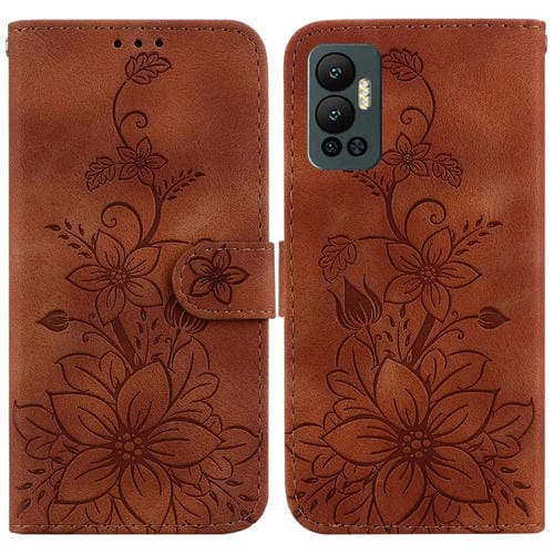 Funda de Cuero en Relieve para Infinix Hot 12I Lily para Teléfono (Marrón)