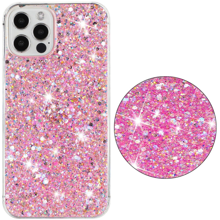 Caja de teléfono TPU para iPhone 12 Pro Max con Polvo de Brillo y Marco Transparente (Rosa)