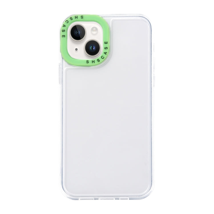 For iPhone 14 Color Contrast Lens Frame Transparent TPU Phone Case (Clear + Green)