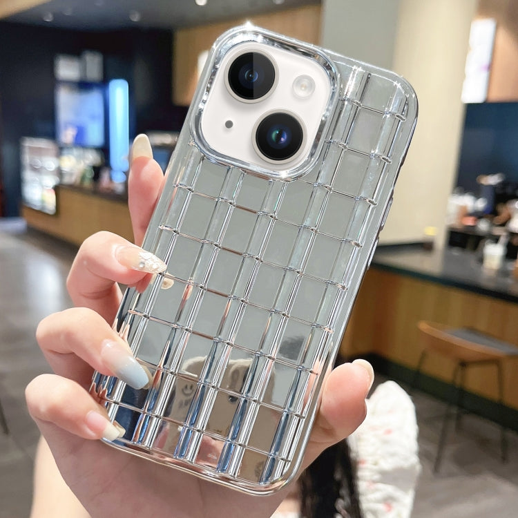 Caja de Teléfono TPU para iPhone 14 con Pintura Metálica Chapada en Cuadros Curvos (Plateado)