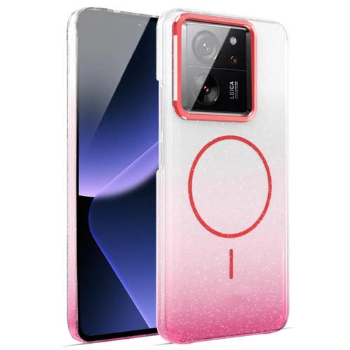 Funda MagSafe a prueba de golpes para Xiaomi 13T/13T Pro con purpurina dorada y degradado (roja)