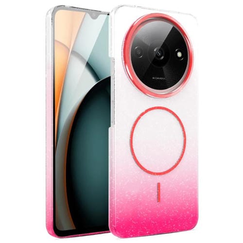 Funda MagSafe a prueba de golpes para Xiaomi Poco M6 4G con purpurina dorada y degradado (rojo)