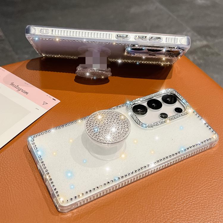 Funda con soporte redondo y purpurina de diamante para Samsung Galaxy S24 FE 5G (blanca)