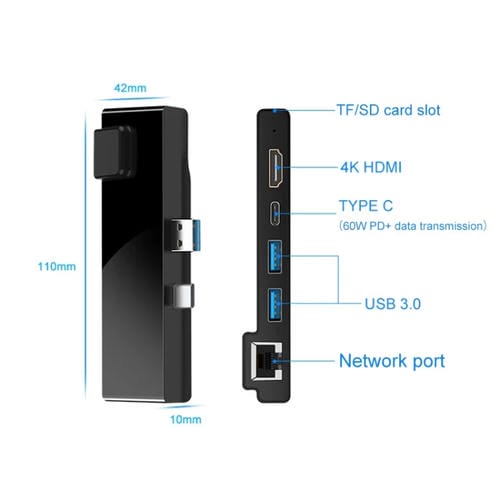 Adaptador Rocketek SH768 6 en 1 RJ45 USB 3.0 HDMI SD TF Hub para Surface Pro 5 6