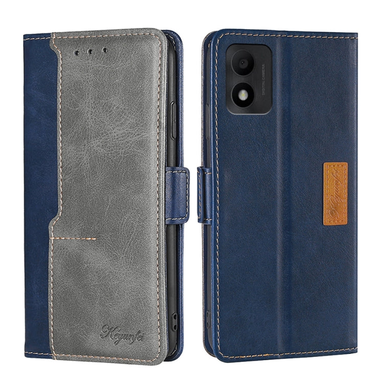 Caja de Teléfono de Cuero para TCL 303 con Hebilla Lateral y Color de Contraste (Azul + Gris)