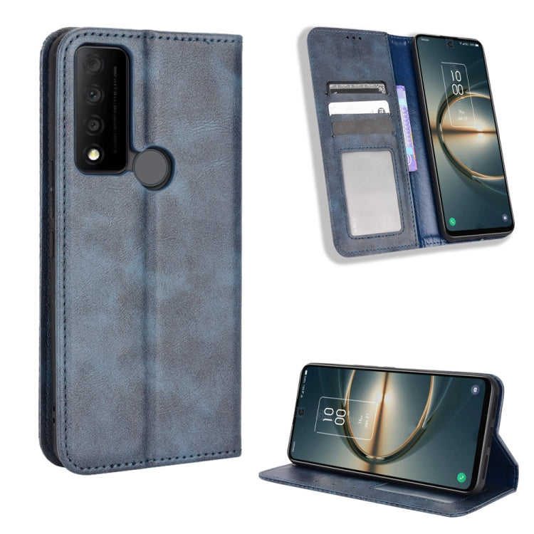 Estuche para TCL 30V 5G con Hebilla Magnética y Textura Retro de Cuero (Azul)