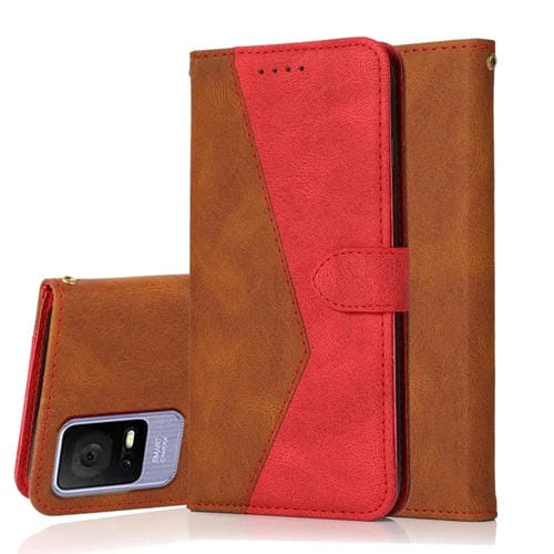 Estuche para Teléfono TCL 405 406 408 Cuero con Costuras Dos Colores (Marrón Rojo)