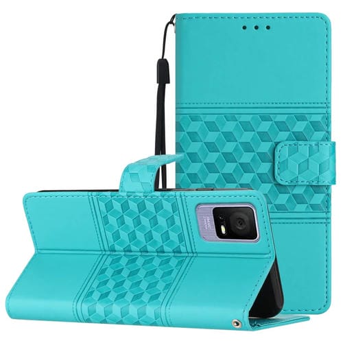 Estuche para Teléfono TCL 50 SE de Cuero RFID con Patrón en Relieve y Cordón (Verde Menta)