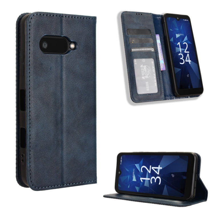 Funda Cuero Kyocera Digno Sx4 Textura Retro Hebilla Magnética (Azul)