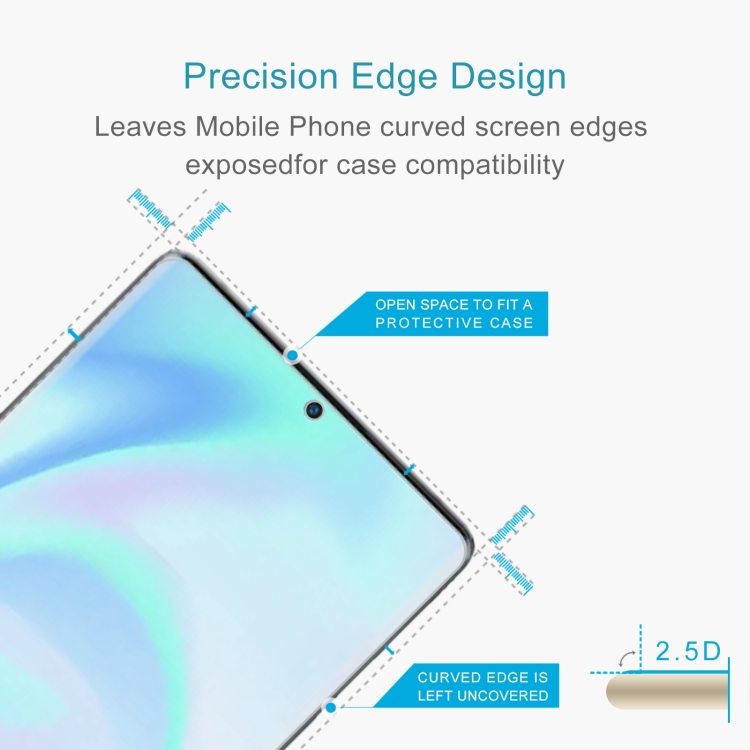 3. Alinee cuidadosamente el vidrio a la pantalla.
