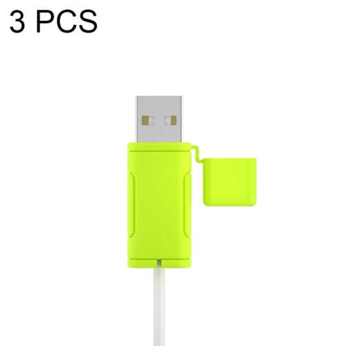 Fundas de Silicona para Cable de Datos Apple USB Lavable Suave (Verde Mostaza) 3 unidades