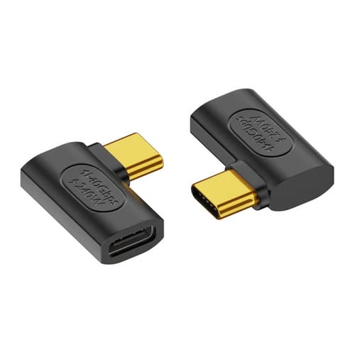 • 1x Adaptador USB-C Tipo-C Hembra a USB-C Tipo-C Macho Curvatura Lateral 40Gbps 240W (Negro)