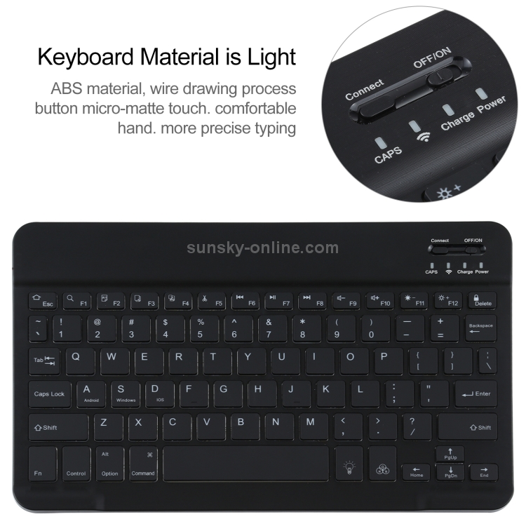 El Teclado Bluetooth desmontable modelo A500S es un accesorio diseñado específicamente para el Samsung Galaxy Tab A7 10.4 (2020). Este Teclado Inalámbrico ofrece una Conexión estable mediante Bluetooth 3.0, con un alcance efectivo de hasta 10 metros, facilitando la escritura remota sin Cables. Su diseño incluye una funda de cuero con Soporte integrado, que protege y mantiene el dispositivo en posición óptima para su uso. La Batería de litio integrada proporciona hasta 70 horas de uso continuo tras una Carga de 4 a 5 horas, y cuenta con un tiempo de espera de hasta 100 días. Además, incorpora una Banda elástica para colocar una pluma, combinando funcionalidad y comodidad en un solo Producto.