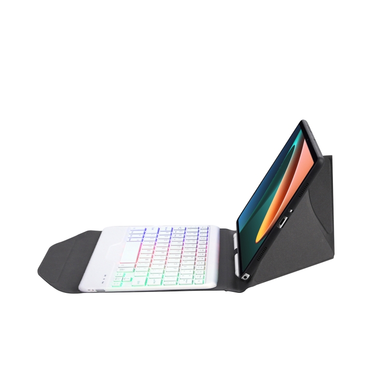 - 1x Funda Teclado Bluetooth B0N5S Cuero con Backlight y Soporte Triángulo para Xiaomi Pad 5/5 Pro (Negro + Blanco)