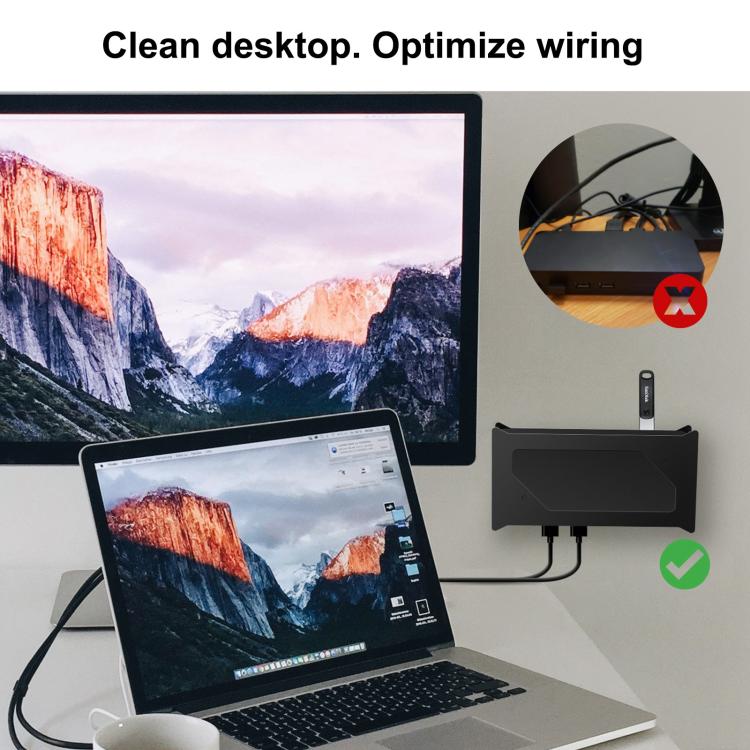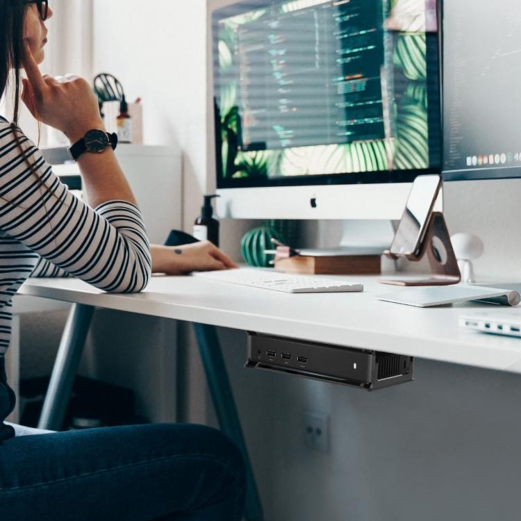 3. Opciones de montaje versátiles: Admite tres métodos de instalación: montaje en pared, montaje bajo el escritorio o colocación en el escritorio, para adaptarse a diversas configuraciones y necesidades de uso.