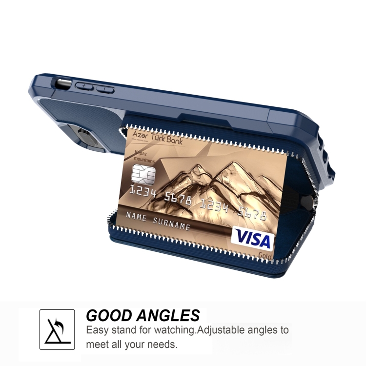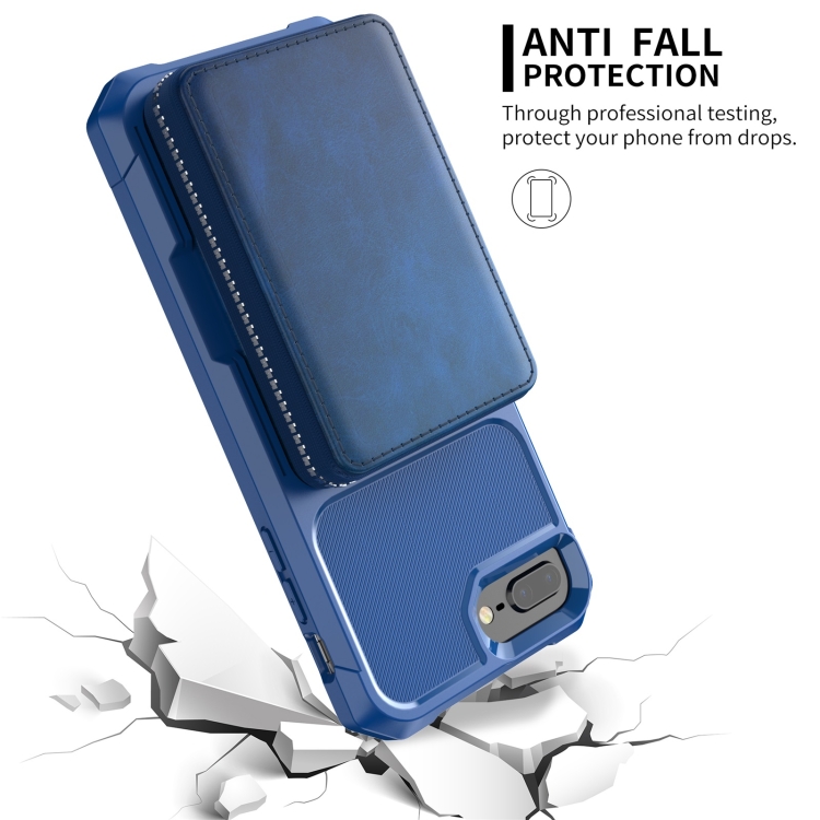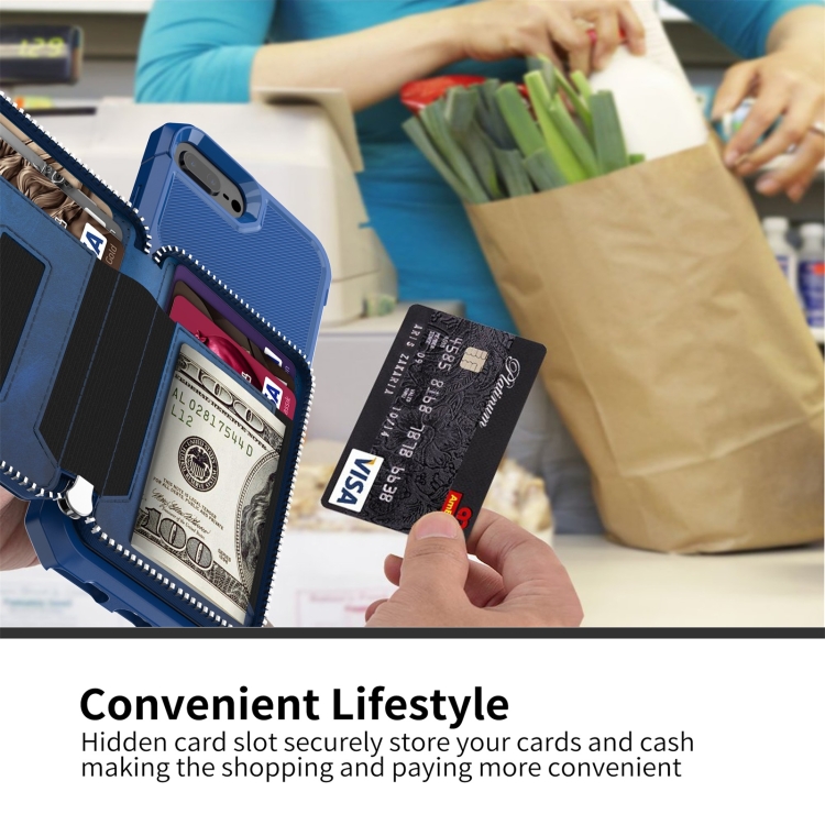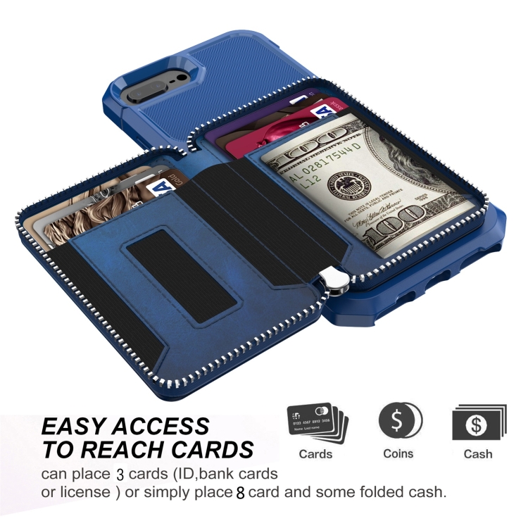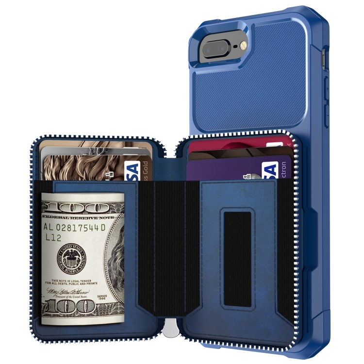 Bolsa de Billetera Zipper Bag Case Back para iPhone 7 Plus 8 Plus 6 Plus (Azul)