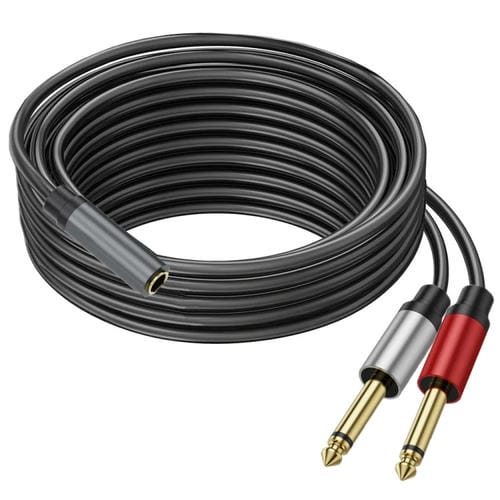 Cable Adaptador Audio Divisor en Y Mono 3,5 mm TRS Hembra a 2x 6,35 mm TS Macho Chapado en Oro 5 m (Negro)