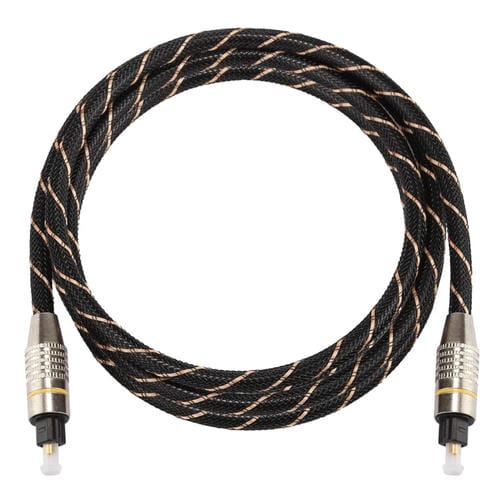 Cable de Audio Óptico Digital Macho a Macho Toslink Línea Neta Tejida con Cabeza Metálica Chapada en Oro 1,5 m OD6,0 mm