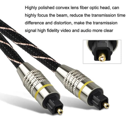 • Longitud de 3 metros; cabezal chapado en oro de 24 quilates; protección de malla trenzada resistente a la tracción; Tapas antipolvo en ambos extremos; Lente convexa pulida para enfoque de haz; Soporte para Dolby AC3, DTS, PCM, Dolby DOLBY, DTS 5.1