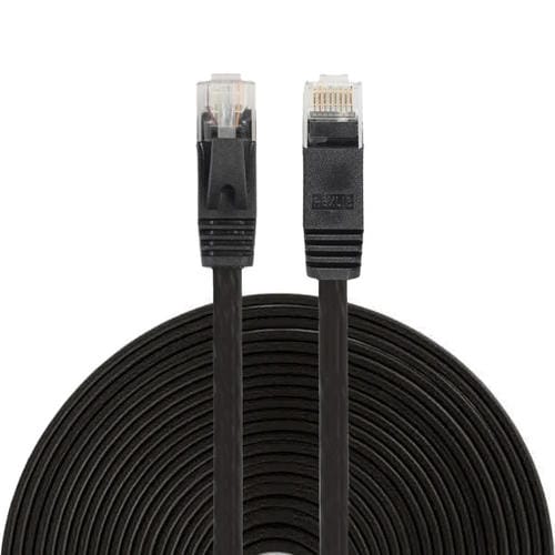 Cable LAN de Red Ethernet Plano Ultrafino Cat6 de 15 Metros con Conector RJ45 (Negro)
