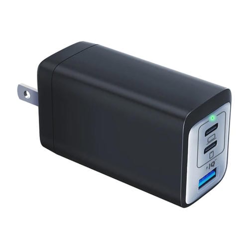 Cargador rápido Gan 65W Dual PD USB-C + USB 3 puertos (Negro)