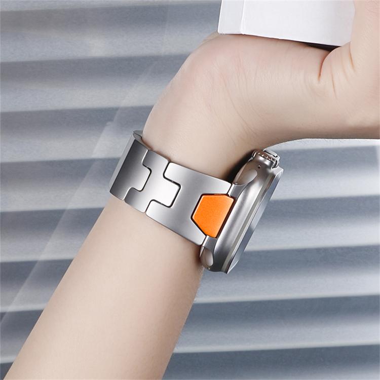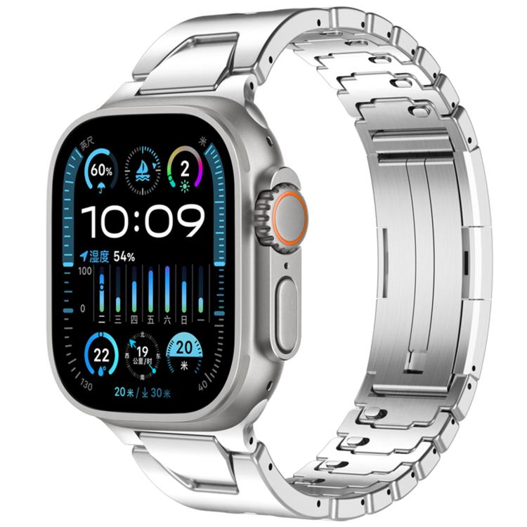Correa de acero inoxidable con hebilla de mariposa y liberación rápida tipo H para Apple Watch de 44 mm, 45 mm, 46 mm y 49 mm (plateada)