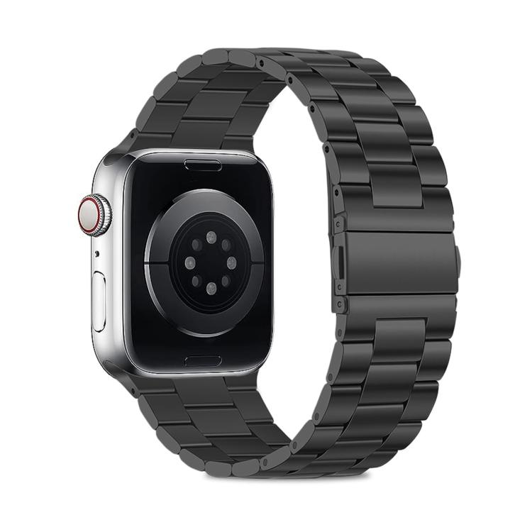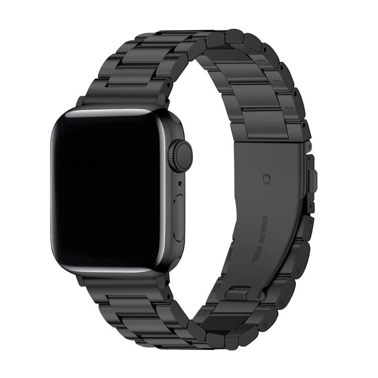 Correa de acero inoxidable con tres cuentas y película curva 3D para Apple Watch Series 42 mm (negra)