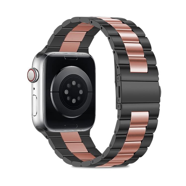 Correa de acero inoxidable con tres cuentas y película curva 3D para Apple Watch Ultra 2/1 de 49 mm (negro rosa)