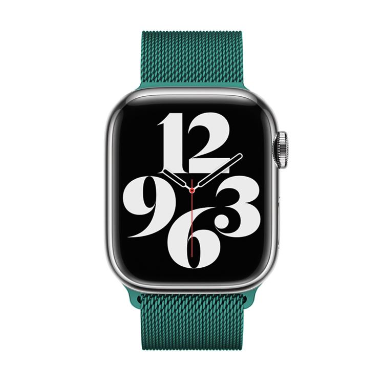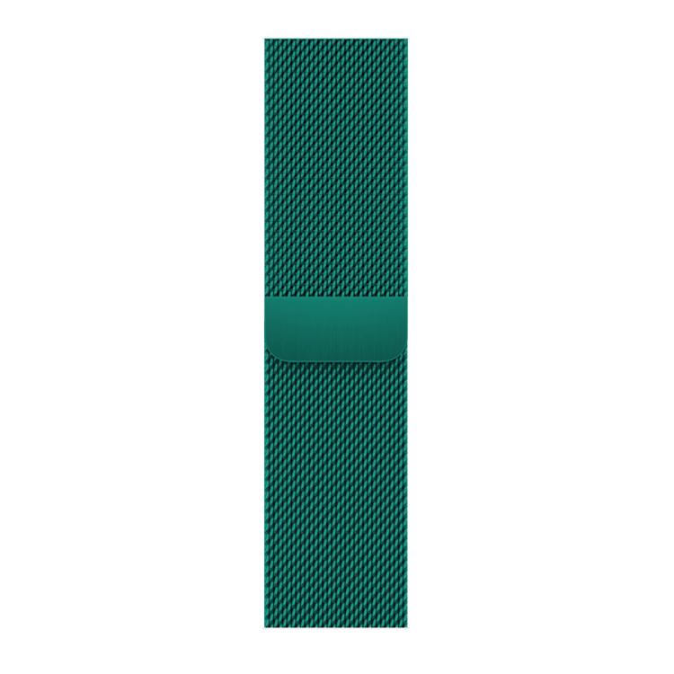 Correa de acero inoxidable milanesa con película curva 3D para Apple Watch Series 10 de 46 mm (verde oscuro)