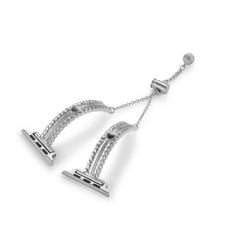 Correa de aleación de zinc con diseño de piedra blanca y amor para Apple Watch de 46 mm, 49 mm, 45 mm y 44 mm (plata)