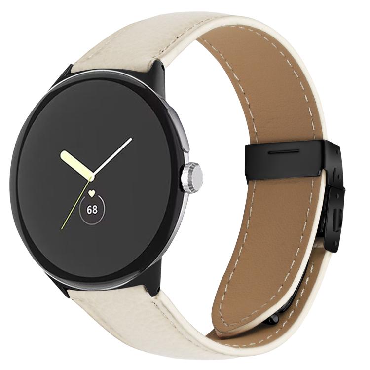 Correa de cuero con hebilla de caparazón de tortuga negra con textura de lichi de 41 mm para Google Pixel Watch 4 / 3 / 2 / 1 (blanco crema)