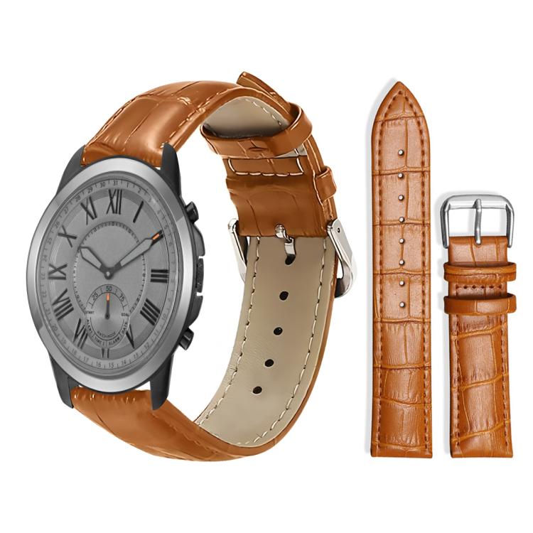 Correa de cuero con hebilla de pasador y textura de bambú de 24 mm para reloj híbrido Fossil Q Machine xDfind (marrón claro)