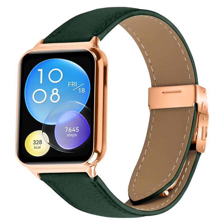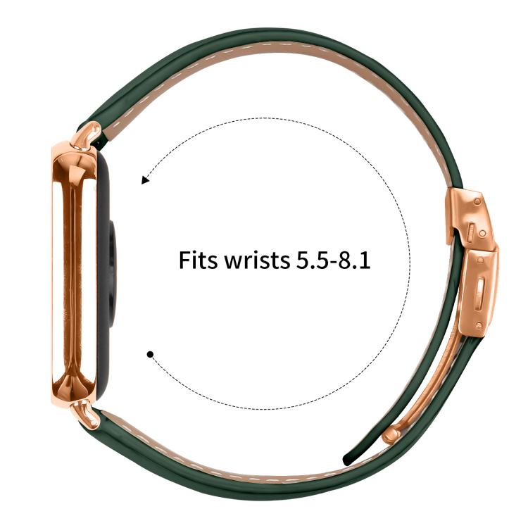 Correa de cuero con hebilla trasera de tortuga en oro rosa y textura de lichi para Xiaomi Smart Band 9 Pro y Redmi Watch 5 (verde)
