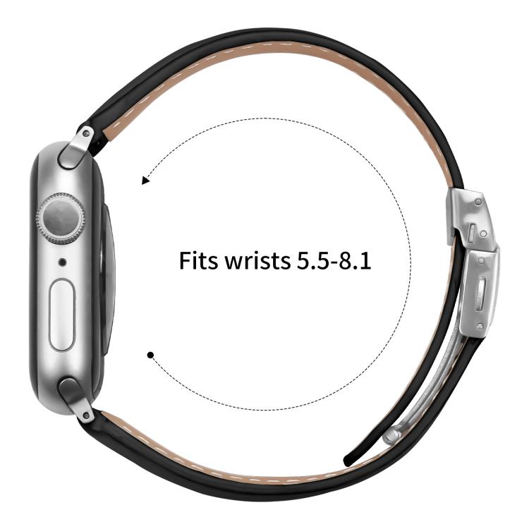 Correa de cuero con hebilla trasera de tortuga plateada con textura de lichi para Apple Watch de 42 mm, 41 mm, 40 mm y 38 mm (negra)