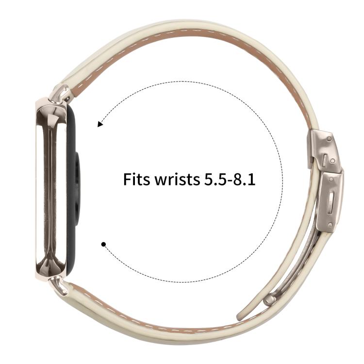 Correa de cuero con hebilla trasera de tortuga y textura de lichi para Xiaomi Smart Band 9 Pro y Redmi Watch 5 (blanco cremoso)