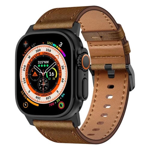 Correa de Cuero Grano Superior Wilderness para Apple Watch Ultra 49mm (Conector Negro, Marrón Oscuro)