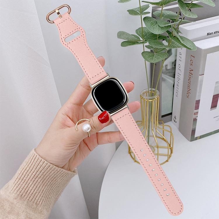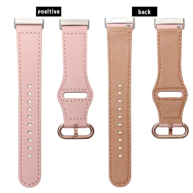 Correa de cuero genuino con hebilla clásica para Fitbit Versa 3/4/Sense 2 (rosa)