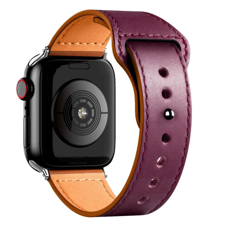 Correa de cuero genuino con hebilla inversa para Apple Watch de 42 mm, 41 mm, 40 mm y 38 mm (rojo vino)