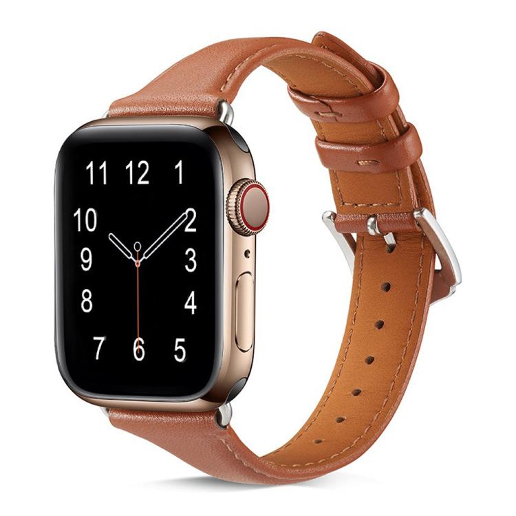 Correa de cuero genuino con hebilla pequeña para Apple Watch de 46 mm, 49 mm, 45 mm y 44 mm (marrón)