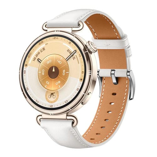 Correa de cuero genuino con hebilla plateada para Huawei Watch GT 6 de 41 mm (blanca)