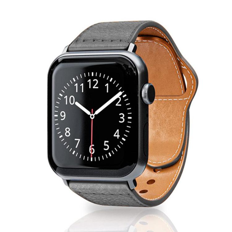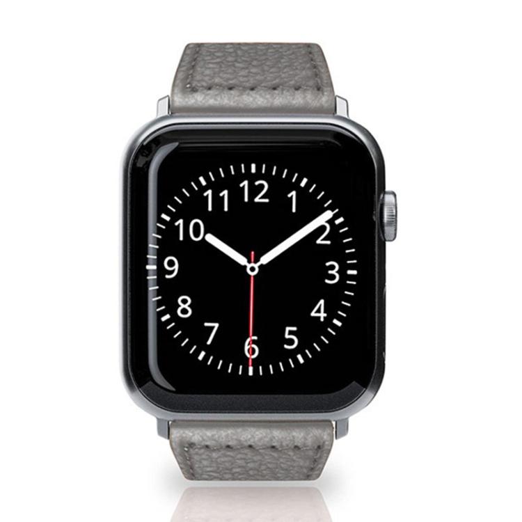 Correa de cuero genuino Litchi con hebilla inversa para Apple Watch de 42 mm, 41 mm, 40 mm y 38 mm (gris)