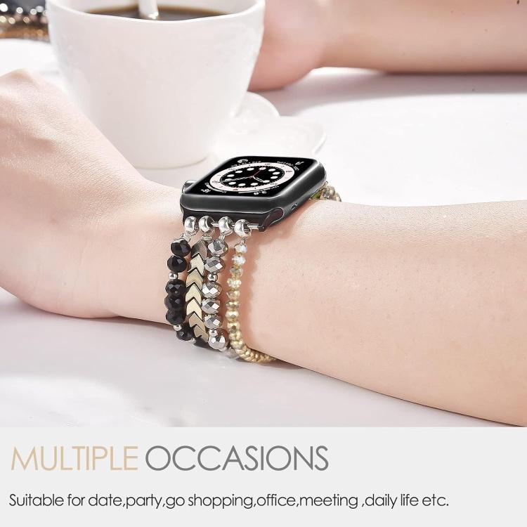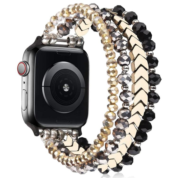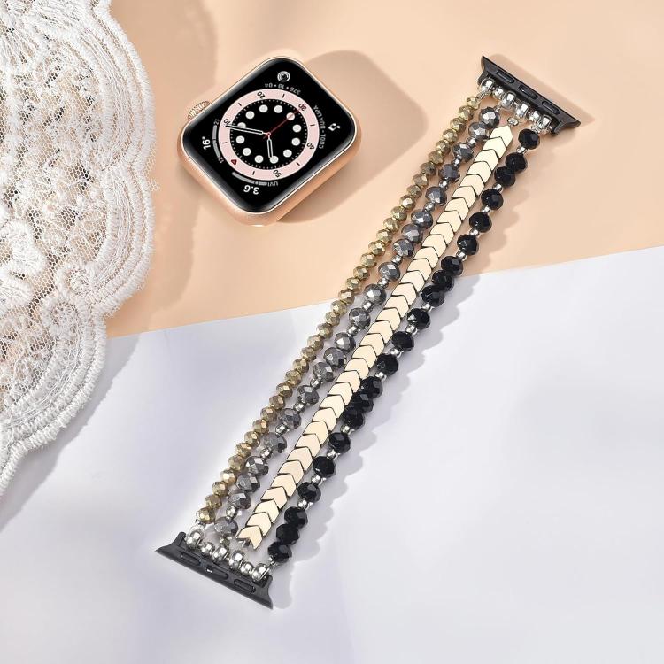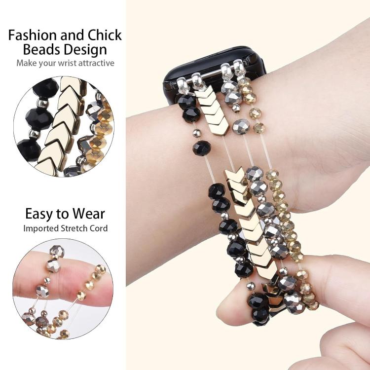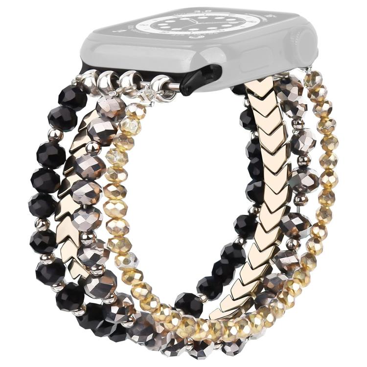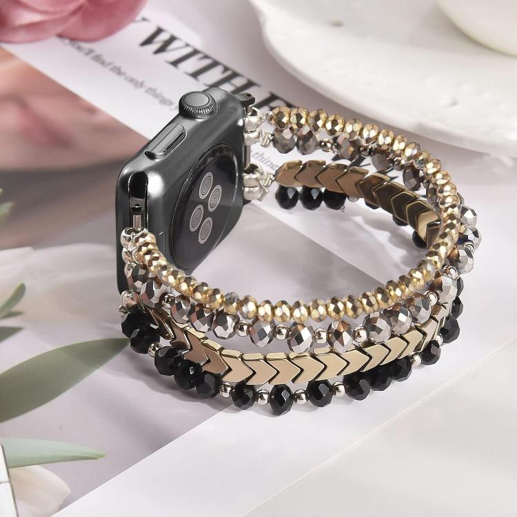 Correa de metal con cuentas de cristal de flecha xDfind para Apple Watch 38/40/41/S10 de 42 mm (negro y dorado)